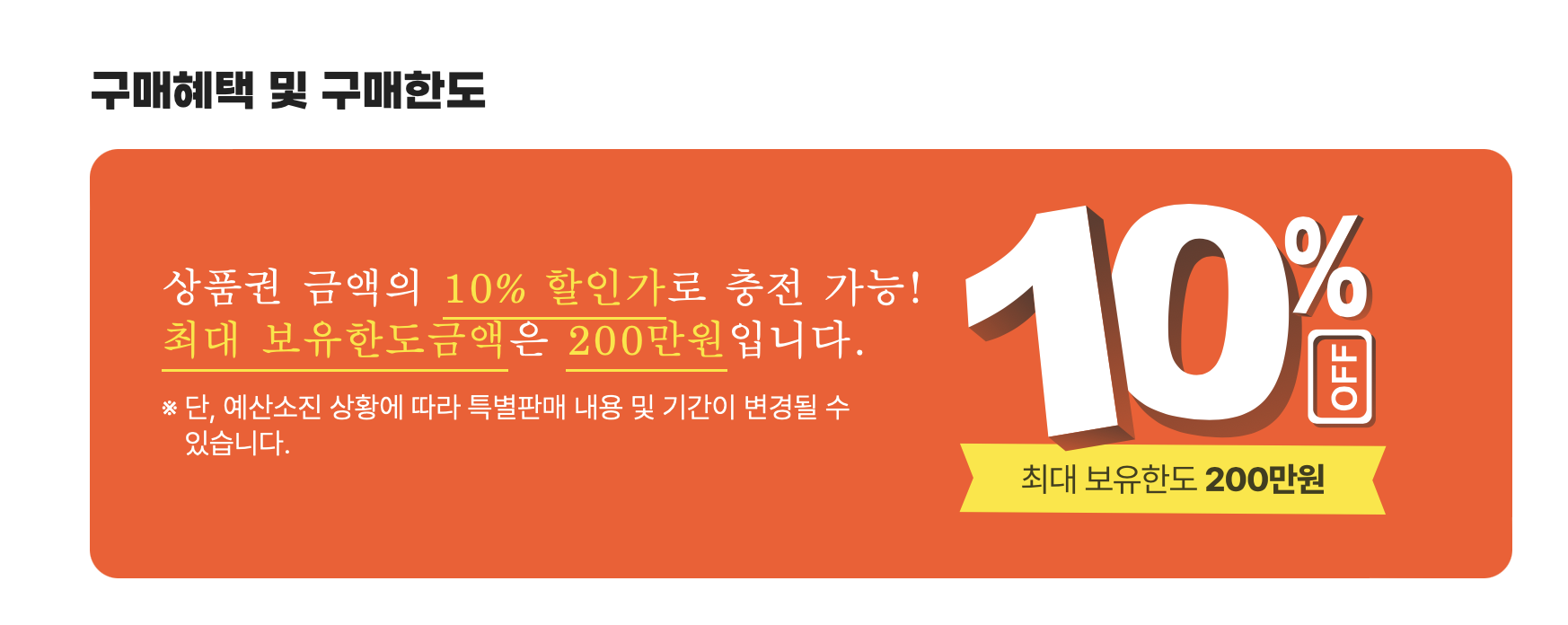 * 1인당 월 30만 원까지 5% 할인 구매 가능 (2025년 기준)
