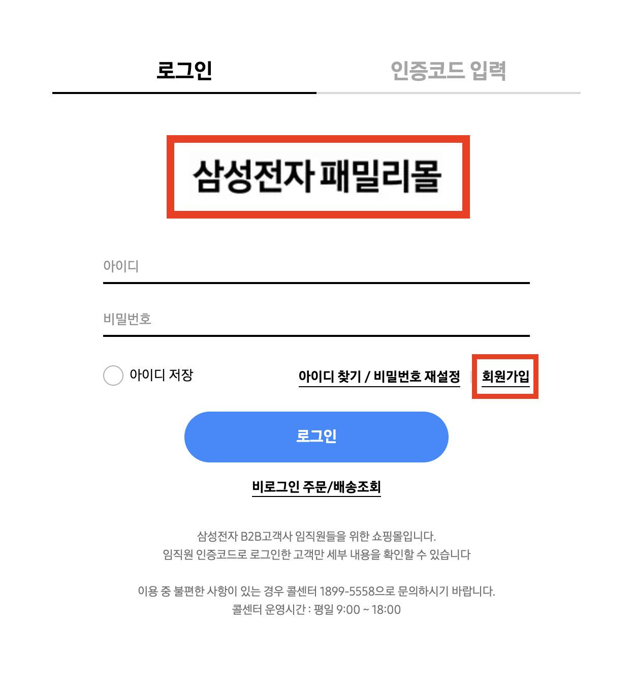 패밀리몰 접속 및 회원가입