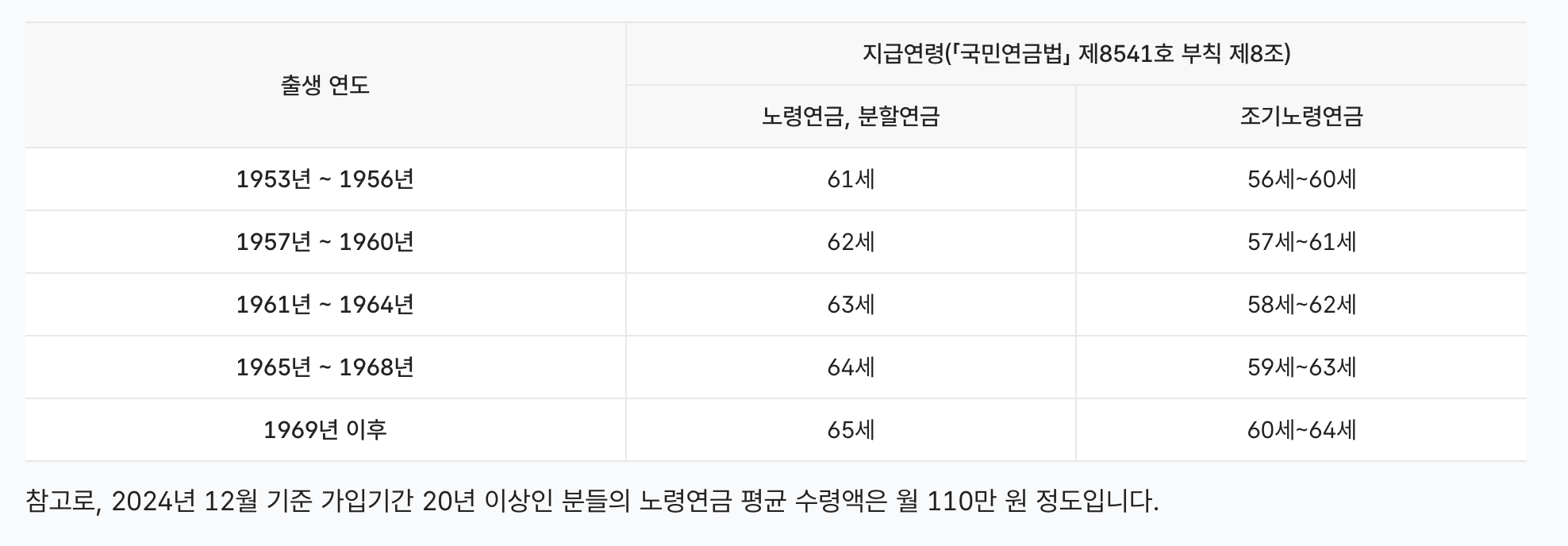 * 출생 연도가 빠를수록 빨리 받을 수 있고, 늦을수록 늦게 시작한다.