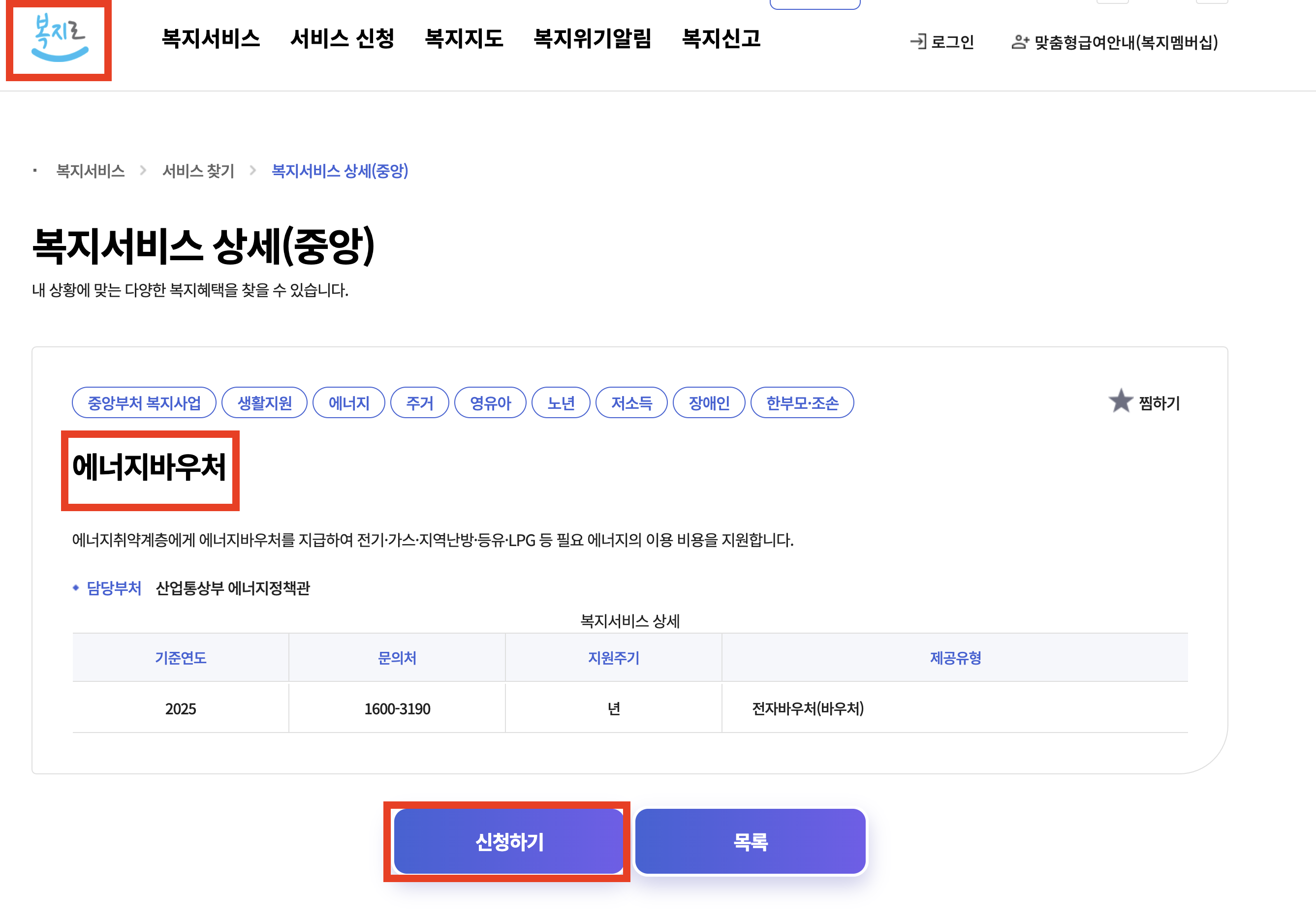 복지로→ ‘에너지바우처’ 메뉴 클릭