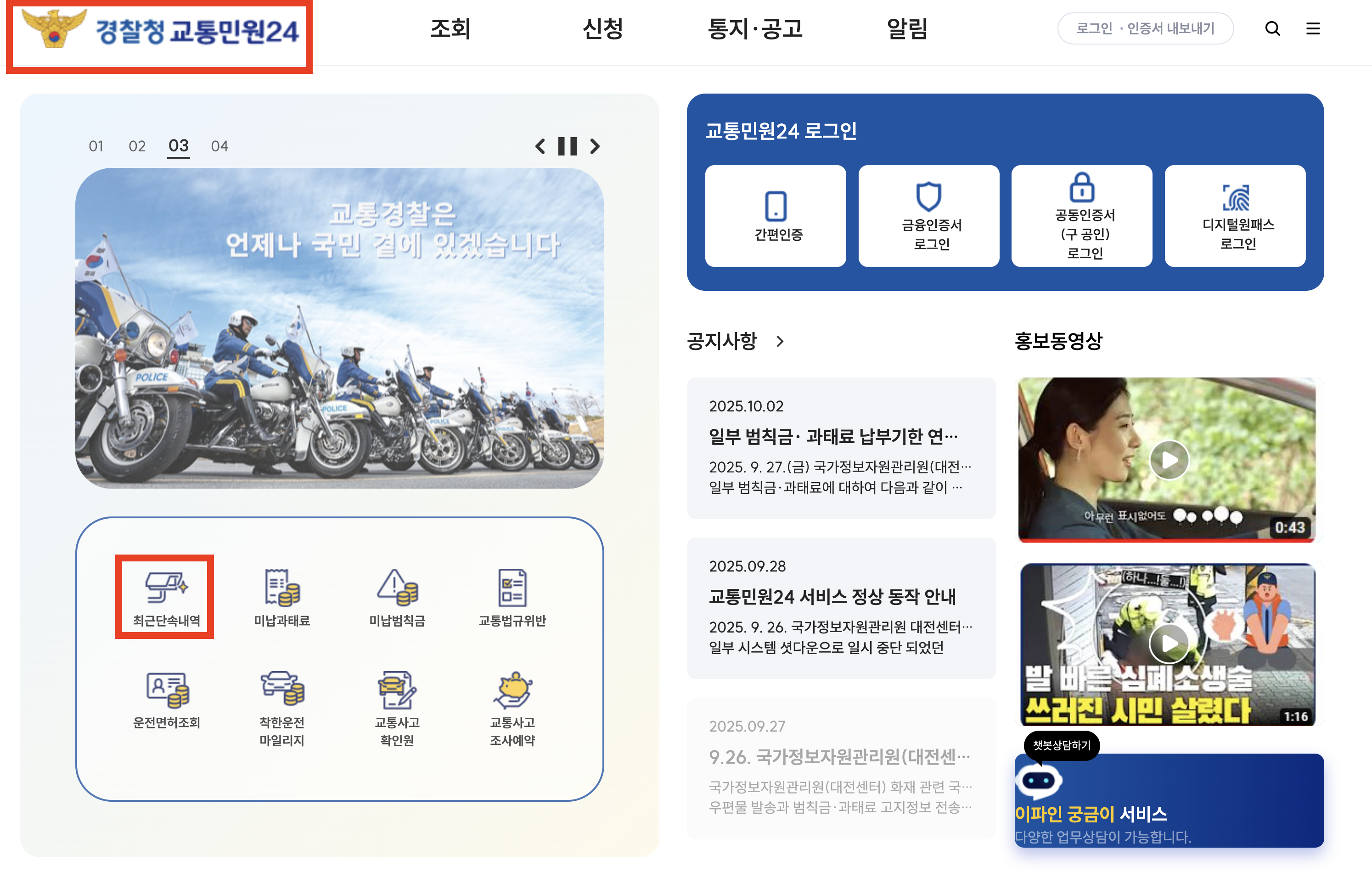 속도위반 단속 여부를 가장 정확하게 확인할 수 있는 공식 경로는 경찰청 교통민원24(이파인) 입니다.