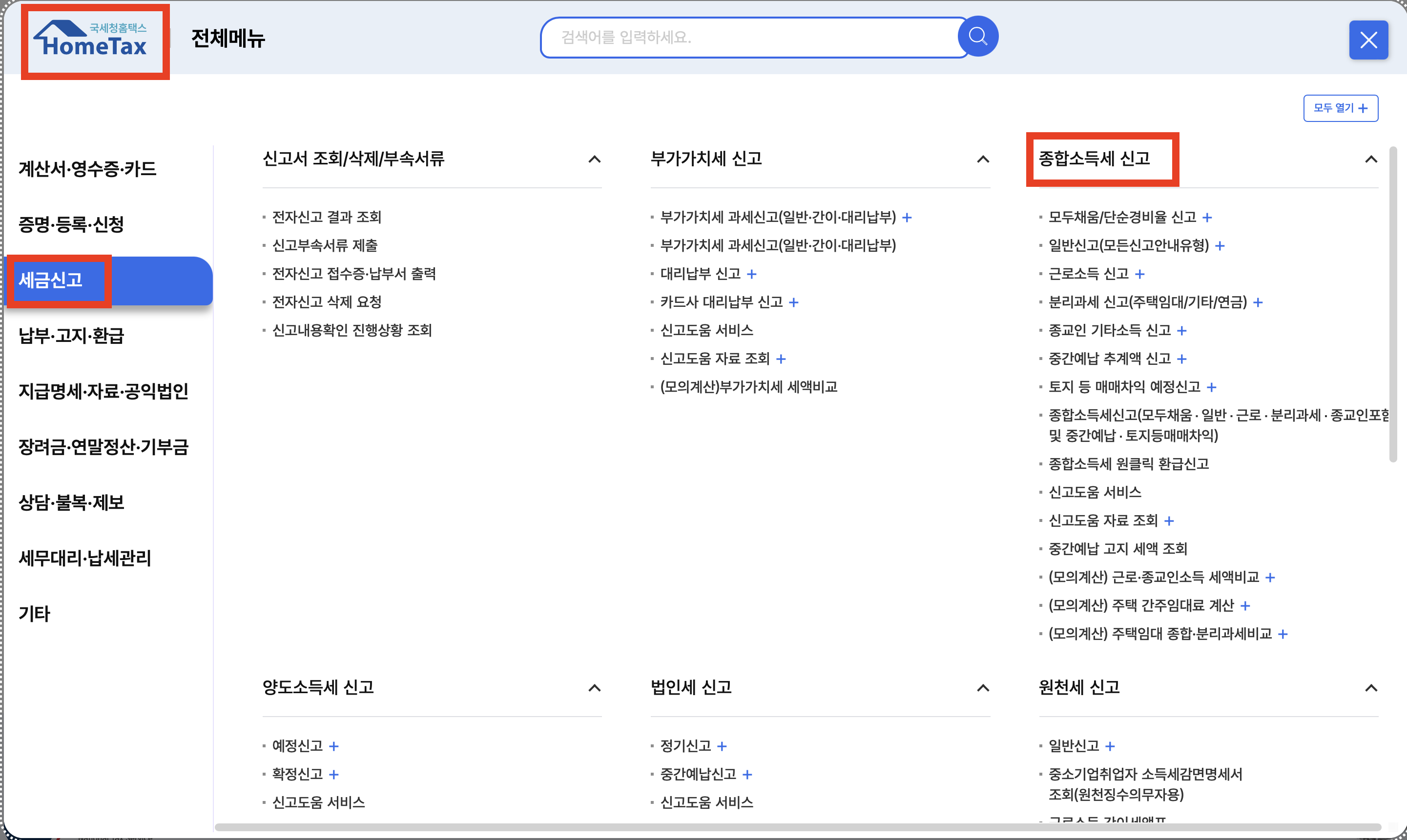 * 신고 절차: 종합소득세 → 신고하기 → 소득자료 확인 → 제출