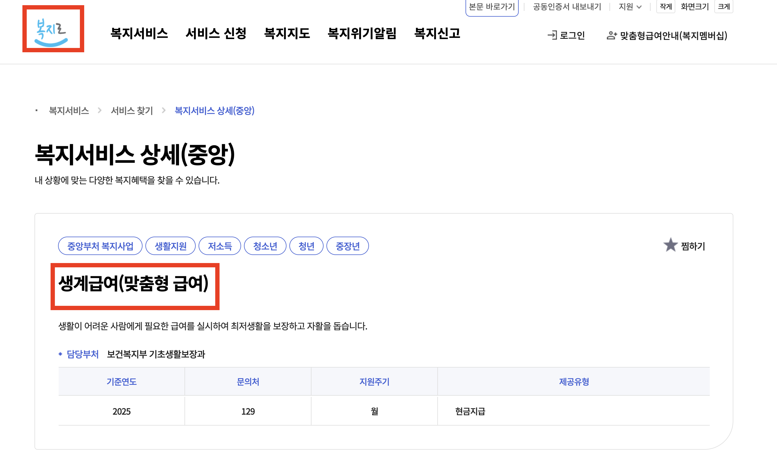 의료·주거·교육급여와 함께 운영되며, 그중 생계급여는 식비·공과금 등 일상생활에 직접 활용할 수 있는 급여라는 점에서 체감도가 가장 높습니다.