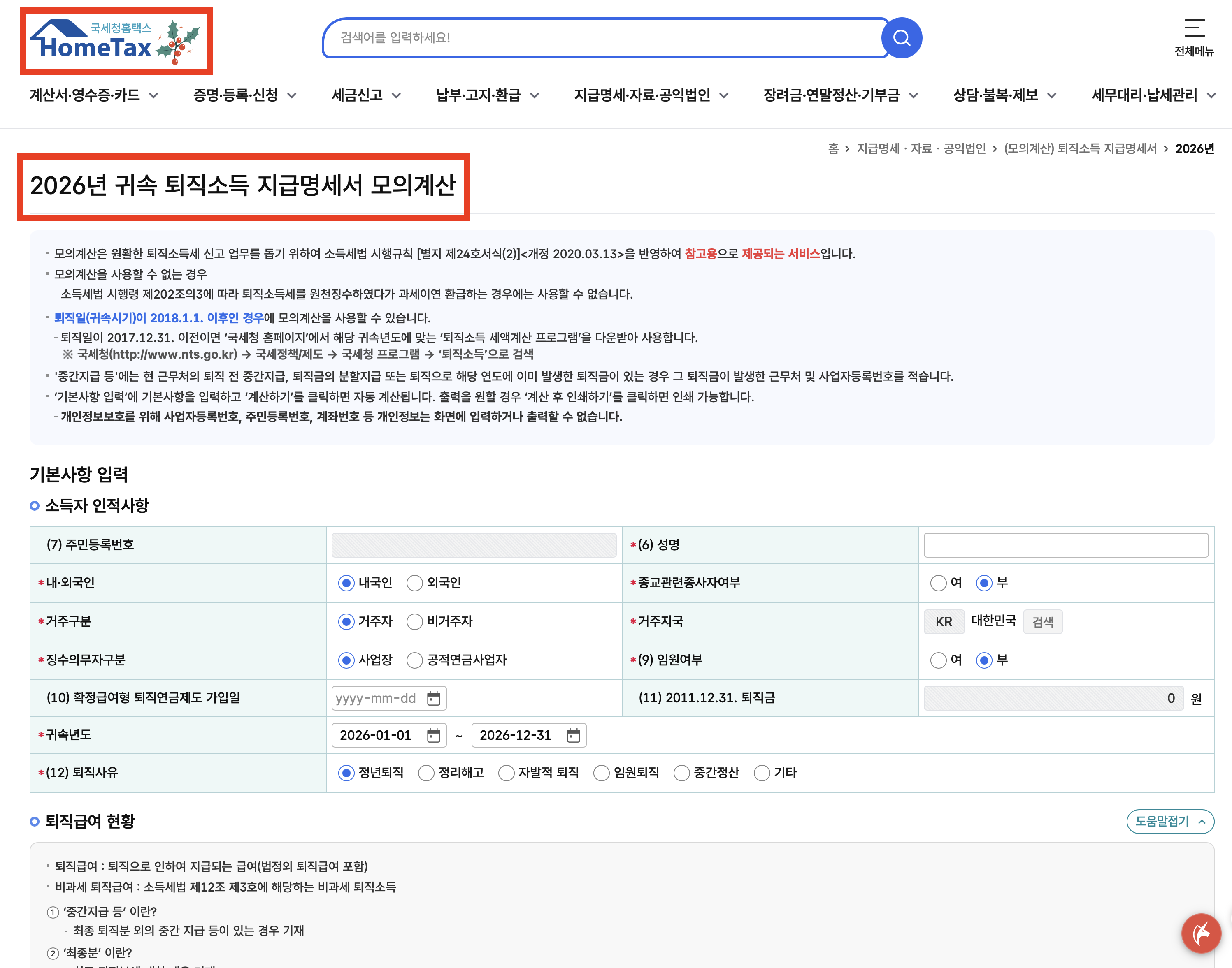 국세청 홈택스에서 내가 받을 퇴직금이 얼마인지 미리 모의계산 해볼 수 있습니다.