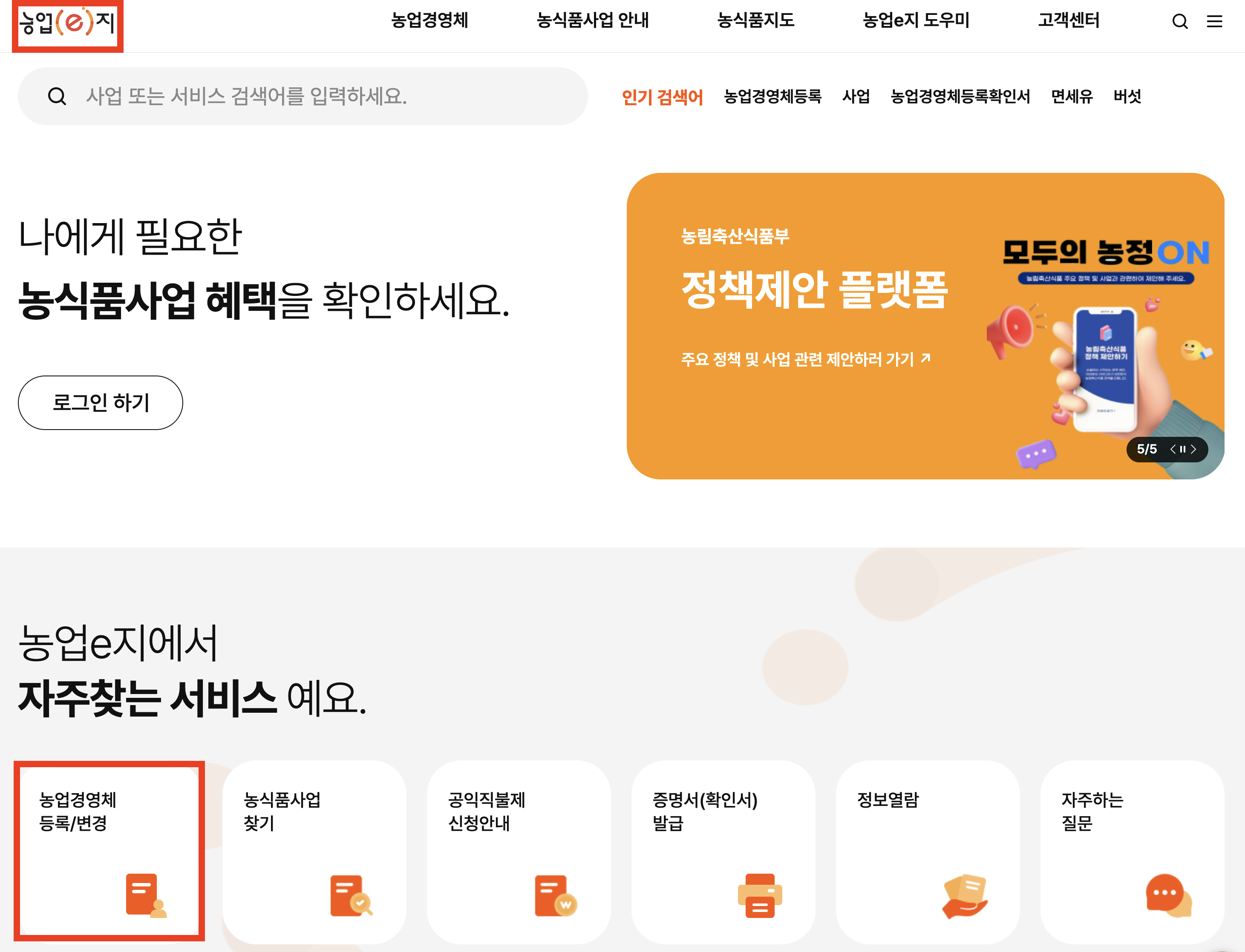*농업e지 홈페이지 접속